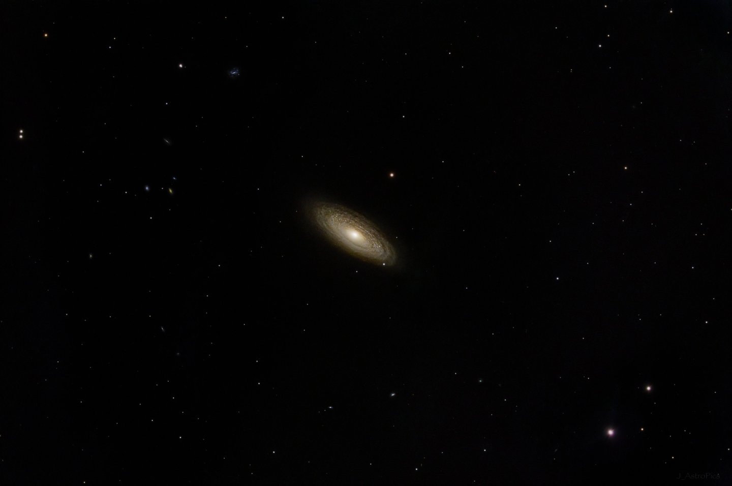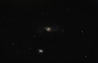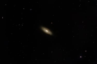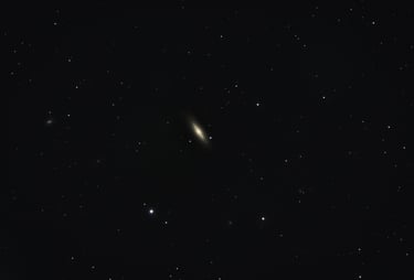 M96 is a spiral galaxy located in the constellation Leo, about 35 million light-years from Earth. It is the brightest galaxy in the M96 Group, a collection of galaxies in the vicinity that also includes M95 and M105. M96 has a well-defined spiral structure with a prominent central bulge and loosely wound arms. The galaxy is notable for its high surface brightness and its role in the study of galactic dynamics and evolution. M96's relatively close proximity makes it a great target for amateur astronomers and astrophotographers who want to capture the details of a classic spiral galaxy. The galaxy’s appearance, combined with its interesting position within the M96 Group, makes it a fascinating object in the night sky.