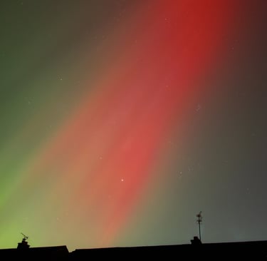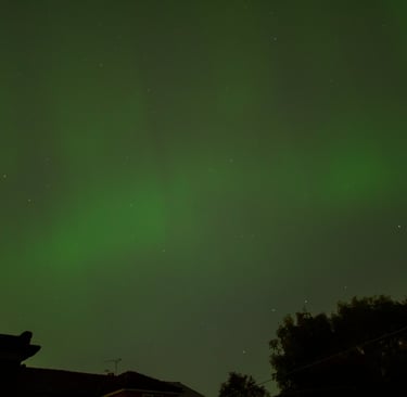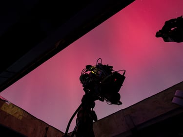 The Northern Lights, or Aurora Borealis, are natural light displays that occur when charged particles from the Sun interact with Earth’s magnetic field and atmosphere. These glowing patterns of green, red, and purple light are typically seen in high-latitude regions near the Arctic. The aurora forms when solar particles collide with oxygen and nitrogen high in the atmosphere, releasing energy as light. Each display is shaped by the solar wind, Earth’s magnetic field, and atmospheric conditions—making every aurora unique. Capturing the Northern Lights requires clear, dark skies and a bit of patience, but the result is a glimpse into the dynamic connection between our planet and the Sun.